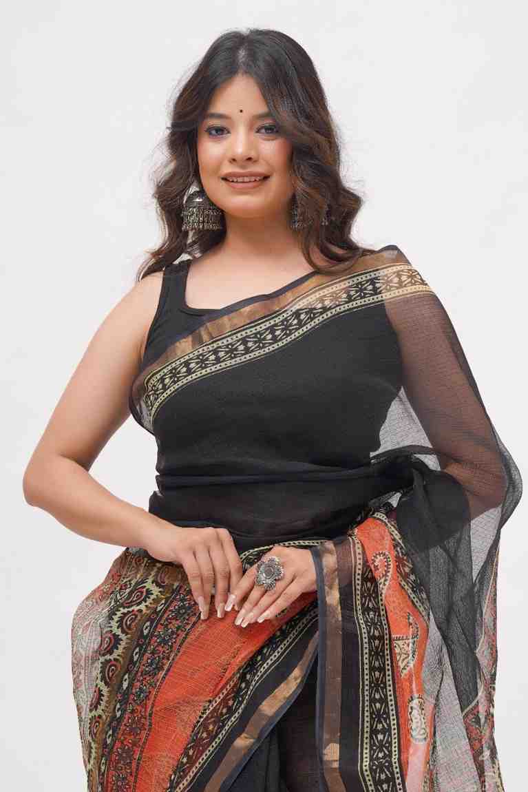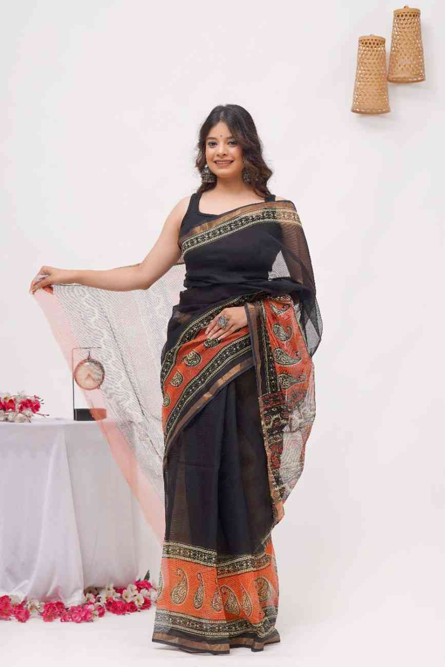 Handcrafted with timeless tradition, this Cotton Kota saree features elegant vegetable dye prints that celebrate natural artistry. Light, airy and effortlessly graceful, it offers a perfect blend of comfort and sophistication. The earthy prints on fine Kota weave make it ideal for both daily wear and festive occasions