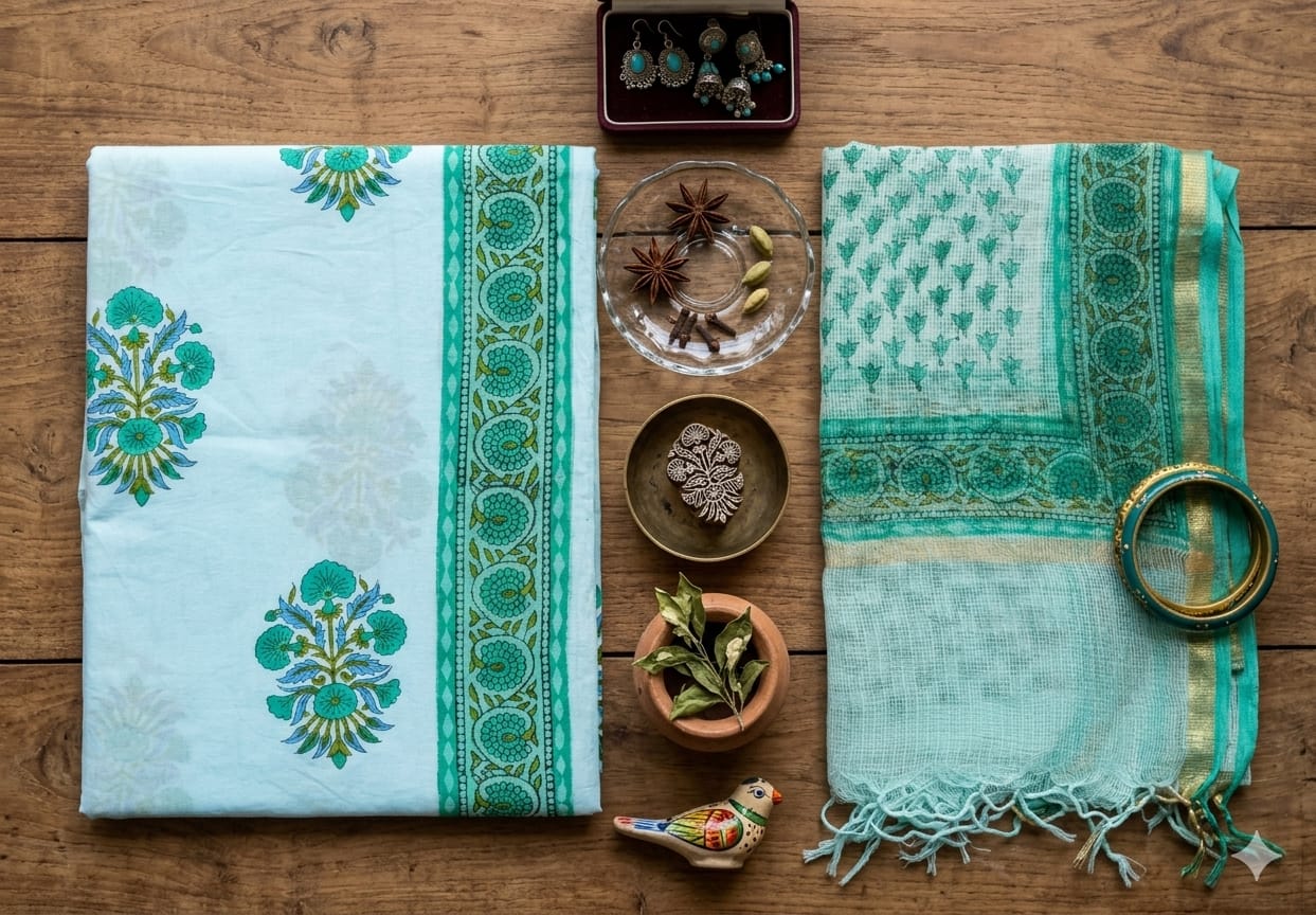 Dupatta: Lightweight cotton dupatta with coordinating prints or borders.