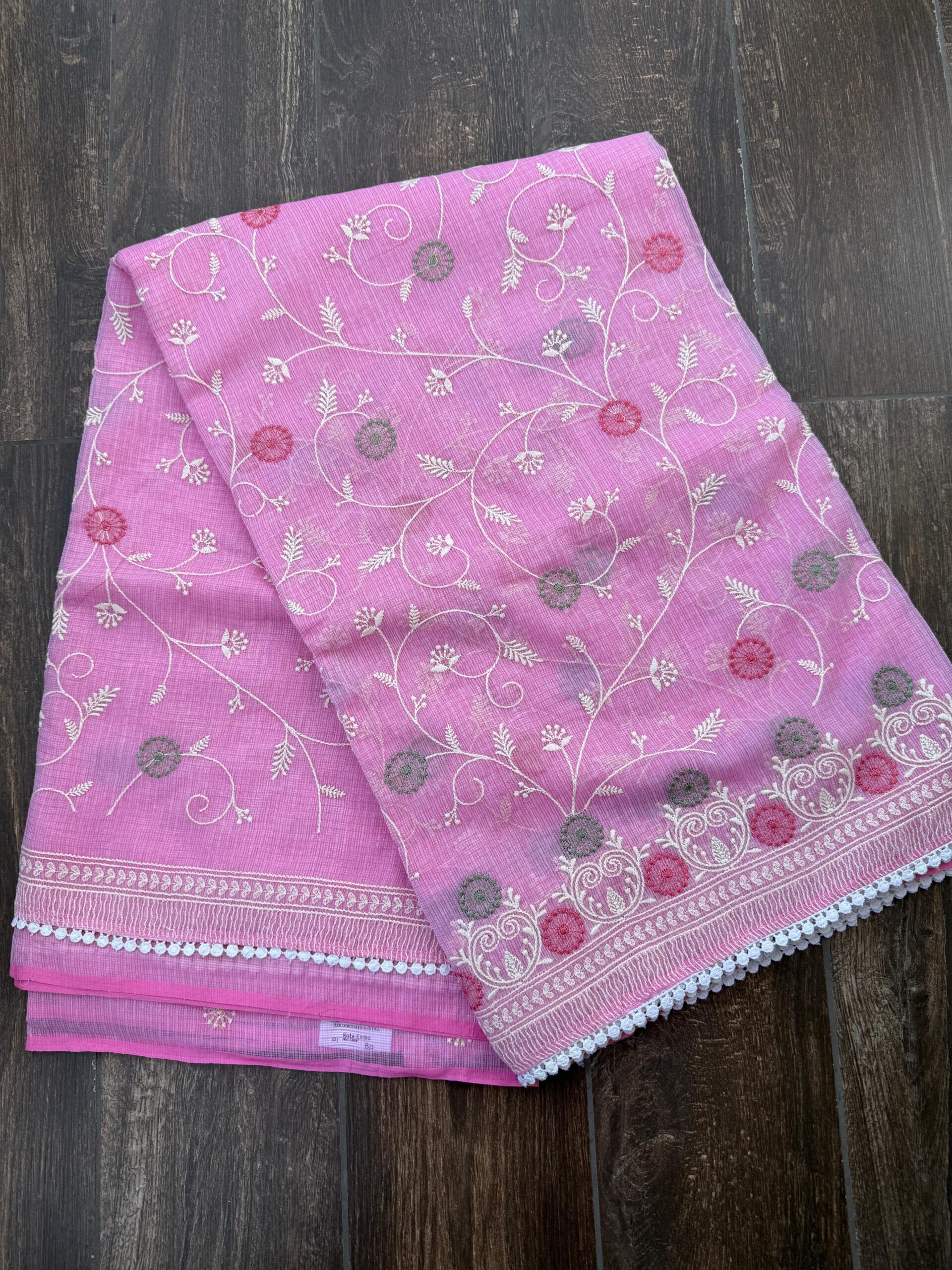 Experience the timeless elegance of traditional craftsmanship with this exquisite Kota Cotton Embroidery Saree. Handwoven from the finest cotton threads, the saree features the signature light and airy texture that Kota fabric is known for — perfect for effortless draping and all-day comfort.
