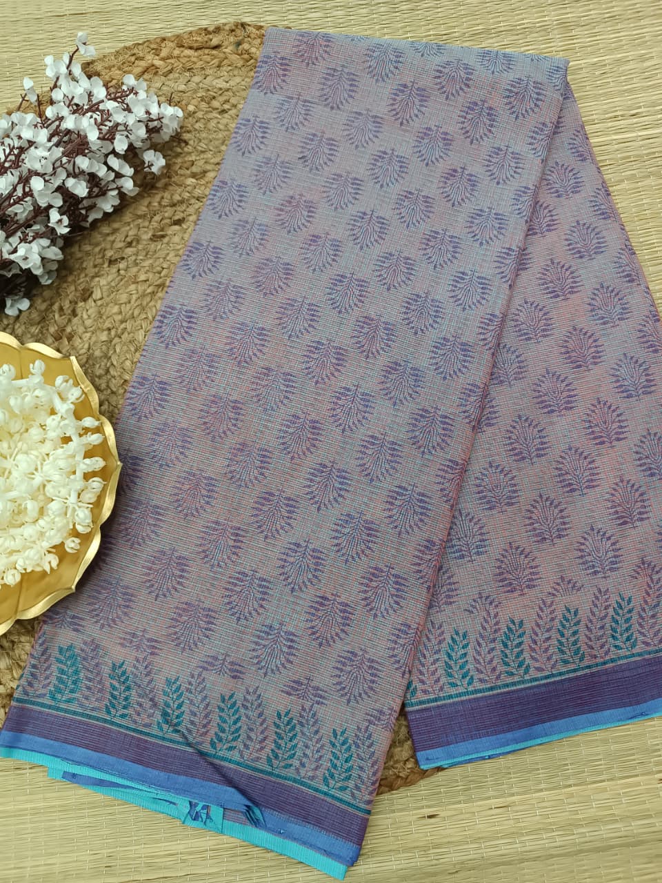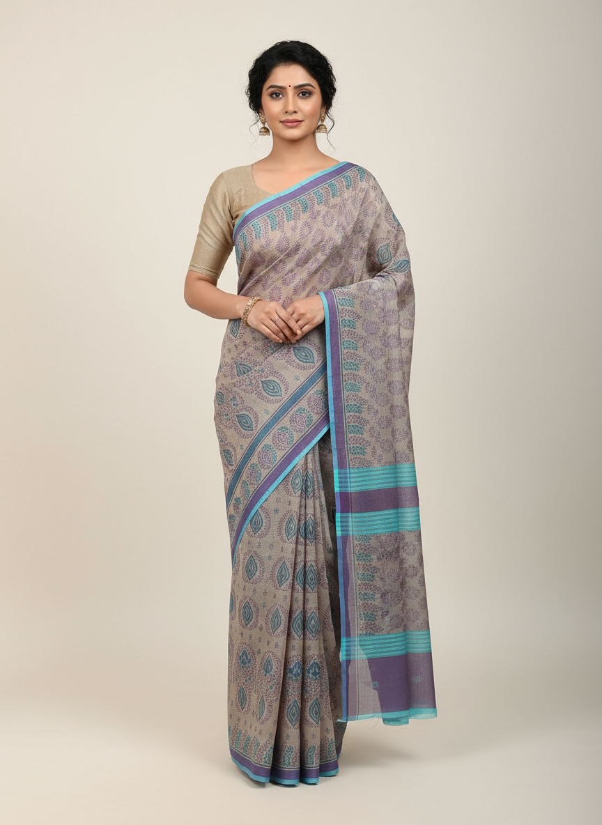 The saree features beautiful, intricate prints that add a touch of sophistication and vibrancy, making it ideal for both casual wear and festive occasions. The soft cotton fabric drapes beautifully, allowing you to move with grace while keeping you cool and comfortable even in warm weather.